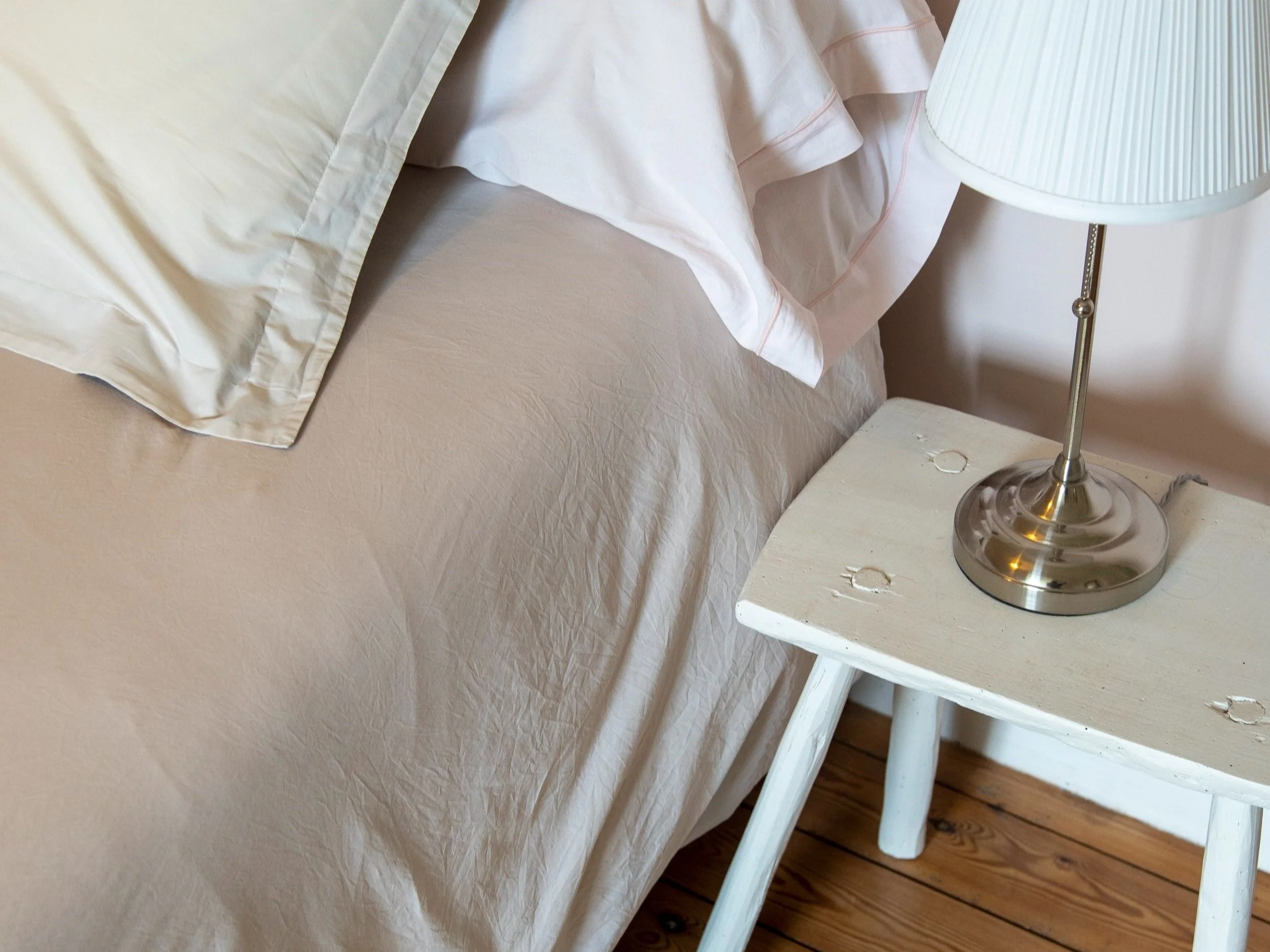 Un lit double aux parures raffinées, une table de salon agrémentée par une décoration soignée toute en douceur, idéale pour les rêves !